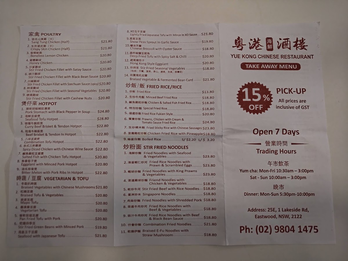 Welcome to Yue Kong Chinese Restaurant, a charming Cantonese eatery located at 25e/1 Lakeside Rd, Eastwood NSW. Yue Kong specializes in deliciously authentic dishes, making it a must-visit for dim sum enthusiasts and Cantonese cuisine lovers alike.